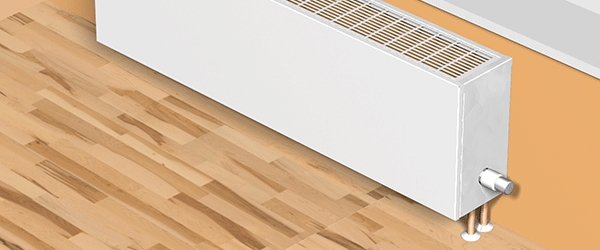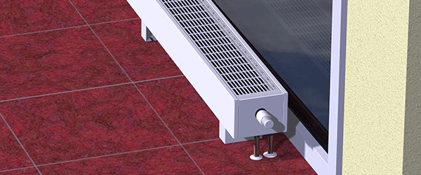 A padlóra szerelt konvektorok többféle felhasználást tesznek lehetővé. Az alacsony szerkezeti magasságnak köszönhetően (190 mm-től, a tartólábakat beleértve) a padlóra szerelt konvektorok ideális választás a nagy üvegfelülettel rendelkező helyiségekben. Irodaépületek, télikertek vagy kirakatok esetében a padlón álló konvektorok megszámlálhatatlan felhasználási lehetőséggel szolgálnak. A Cu/Al hőcserélők késleltetés nélkül reagálnak a helyiségek megváltozott hőigényére és kiválóan ellensúlyozzák az ablakok felől érkező hideg légáramlatokat. A konvektorok külső burkolata közvetlenül nem érintkezik a fűtővízzel, ezáltal megakadályozva a hősugárzásból eredő hőveszteséget, különösen az üvegfelületeknél, így jelentősen csökkentve az üzemeltetési költségeket.