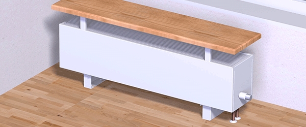 A fa ülőfelülettel ellátott konvektorok csak padlóra szerelt kivitelben rendelhetőek. Az ülőfelületet rögzítő konzolok a gyári készlet elemeit képezik, a fa ülőkét azonban külön kell megrendelni.